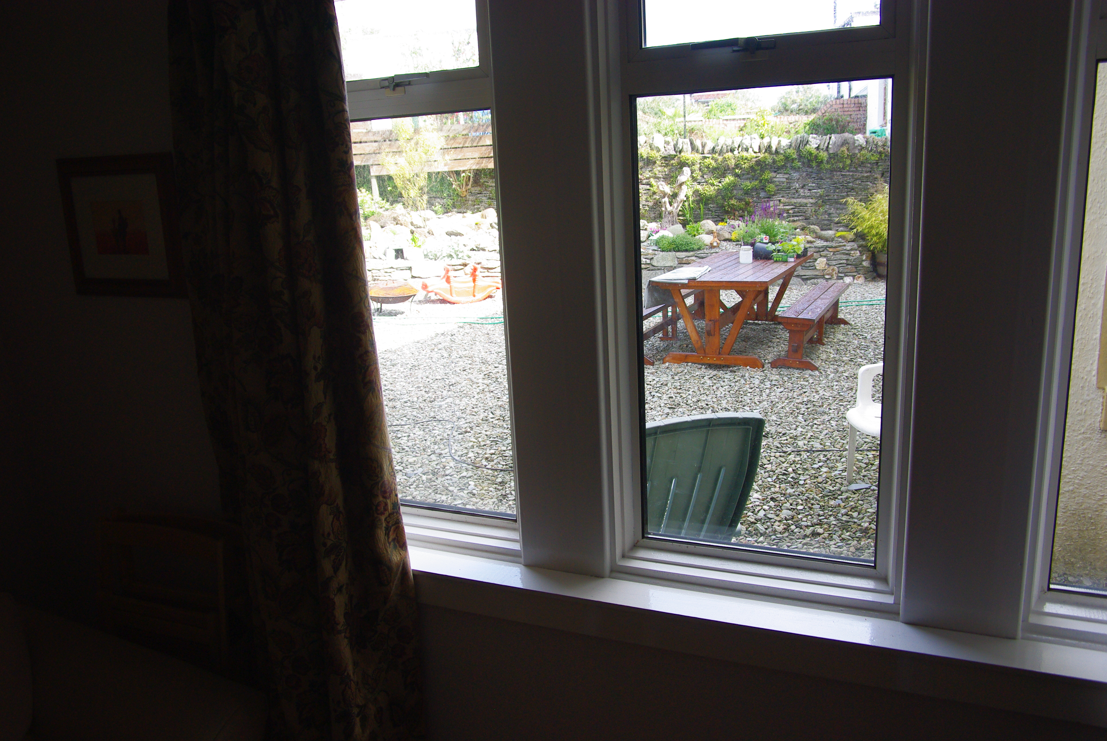 The annex is within our garden- complete with chickens and veg beds, and a large table and chairs that you are welcome to use should the sun be shining. Which it does sometimes honest!