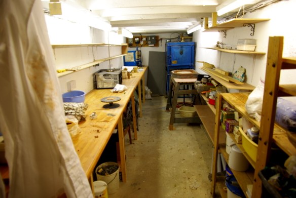 Regular readers will know that about a year ago, I took a road trip down to Derbyshire to collect two kilns and a load of pottery equipment that we intended to install in our cellar. It turned out to be a lot harder than we thought as the big Kiln, weighing in at over half a ton, had to be extracted from an outbuilding at the end of a garden, carried in over and around rockeries, garden ponds and bushes and then lifted into the back of a hired van. Without a couple of Michaela’s uncles (both ex miners and used to moving big things) we simply would never have moved it.