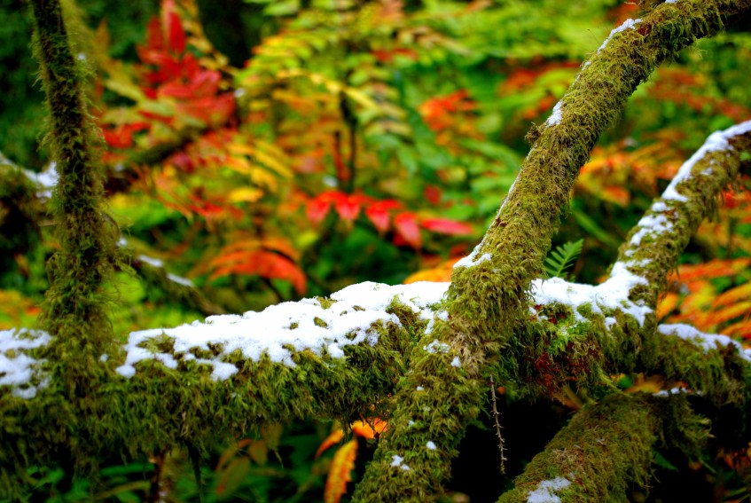 leaves, colour, snow