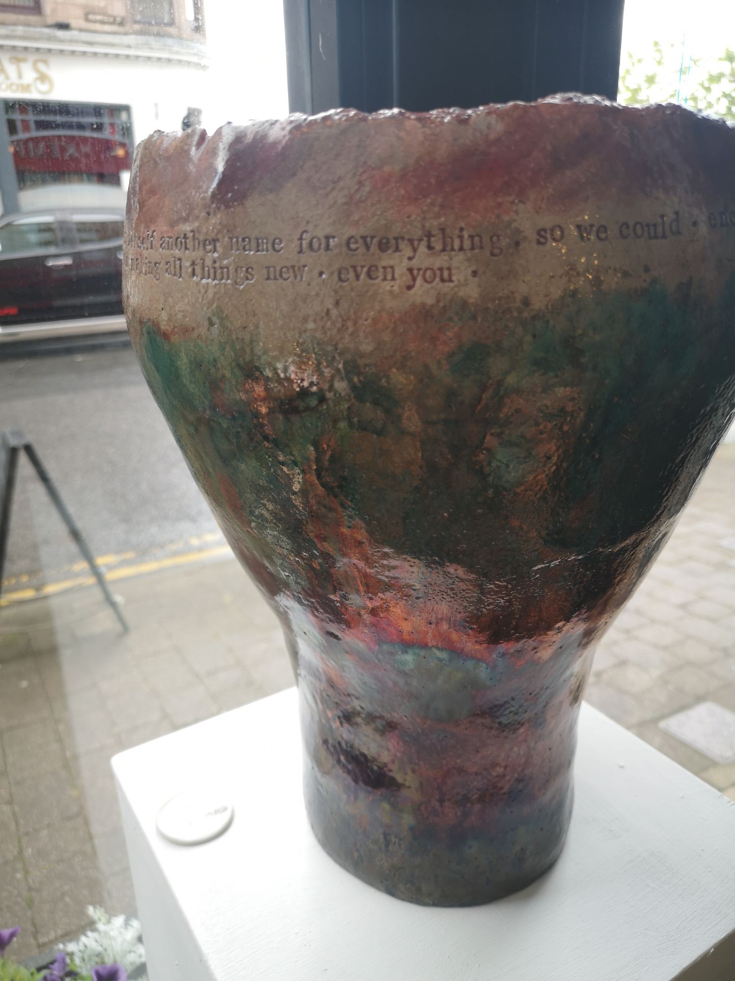 The shop is a way for us to showcase our pottery to an increasingly art-interested Inverclyde. This will be our second time in McGilps, and last time I loved it. So many good conversations, and we sold some work, allowing us to continue doing what we do. Alsongside this trading, we have also tried to put on a couple of events, including a poetry reading or two.